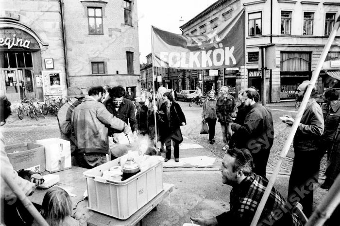Vpk Vänsterpartiet i Lund anordnade folkök soppkök? utanför nyinvigda Grand Hotell i Lund sept 1981