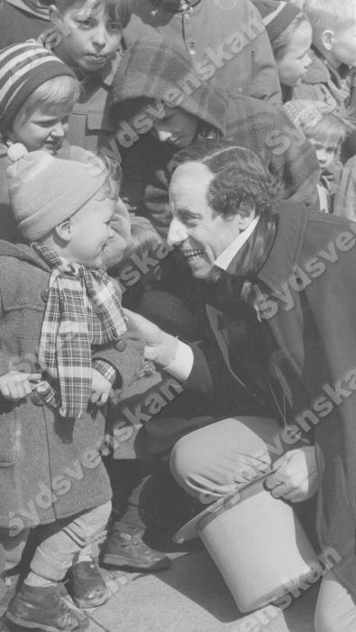 ” H C Andersen ” själv tog emot hyllningarna på terassen framför Rådhuset i Köpenhamn / København