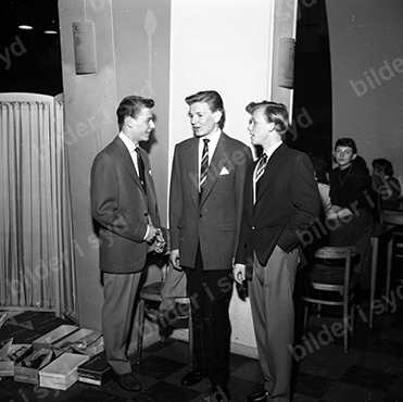 Broadway Herrcentrum Affär Malmö Modevisning på Amiralen februari 1956 Mannekänguppvisning Mannekäng