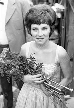 Tennisveckan Båstad juli 1961 Snurrefesten Tennisstadion Jippo Evenemang på centercourten Susanne Wigfors trumpet