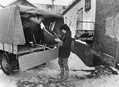 Kulturmejeriet Mejeriet Lund Fredrik Hagblom och Beatrice Rothstein lastar ur möbler februari 1985