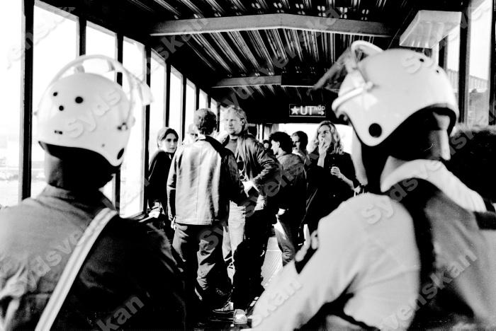 Danska husockupanter på väg till Oslo Stoppades av svensk polis i Helsingborg 1989 Kravallpolis BZ husockupanterna från Köpenhamn