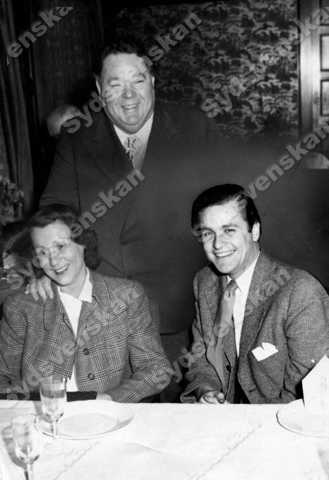 Edvard Persson stående tillsammans med hustrun Mim och Georg Fant