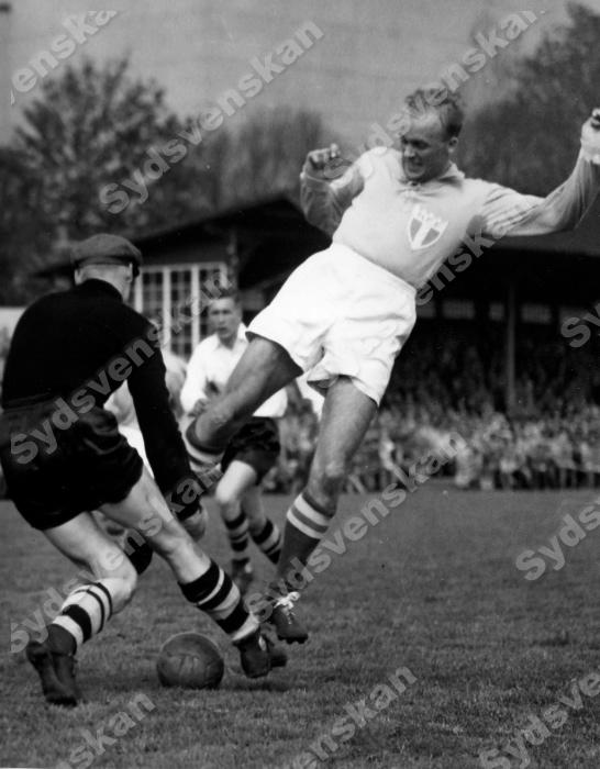På bilden ses Prawitz Öberg attackera Sandvikenmålvakten Ågren