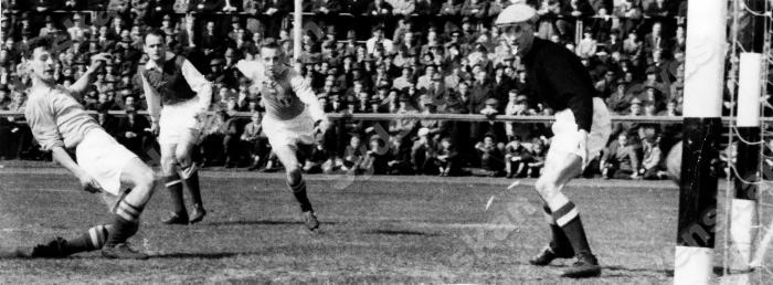 Idrott Fotboll Svenska klubblag Malmö FF Kalmar FF 1955 KFF-MFF 0-1 Publik 7201 i Kalmar Jan Ekström har skjutit matchens enda mål