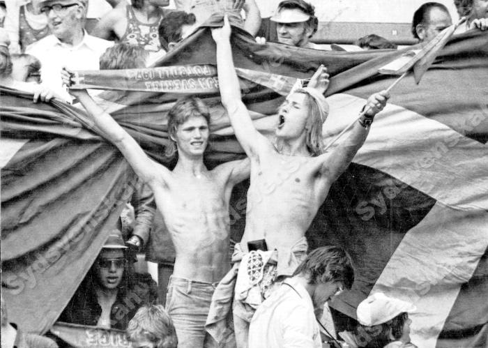 Svenska fans publik åskådare på läktaren vid matchen Sverige – Uruguay.
