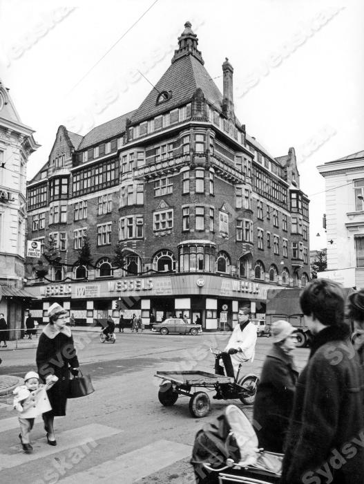 Wessels-hörnan Wessels i korsningen Södergatan – Stora Nygatan i Malmö vid Gustav Adolfs Torg Malmö Affärer Företag Wessels 1964 Torg Gustav Adolfs Torg Gator Stora Nygatan / Södergatan